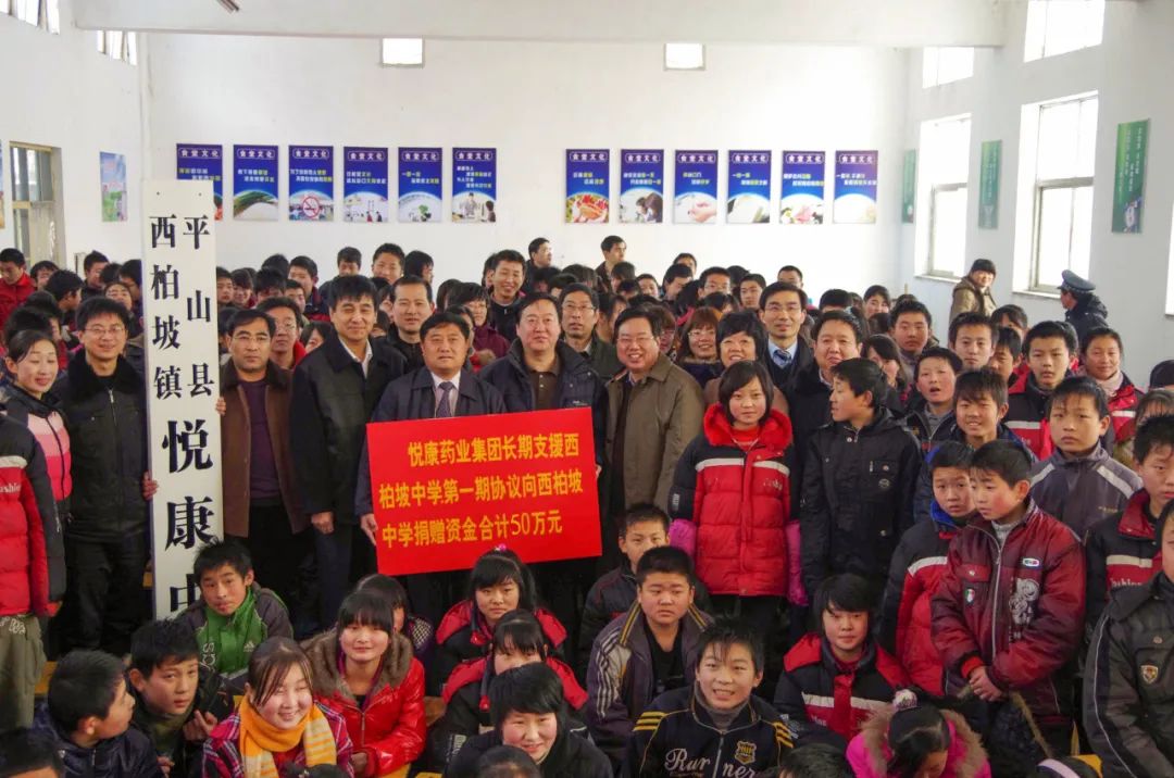 悦康药业集团始终将践行社会责任融入企业发展战略,持续开展抗震救灾、拥军助学、产业帮扶、乡村振兴、健康义诊等公益行动。集团致力于持续改善贫困地区医疗卫生条件,并在发生重大自然灾害时,为灾区提供紧急支持;同时以革命老区和业务区域为立足点,开展了辐射全国的助学扶贫工作。